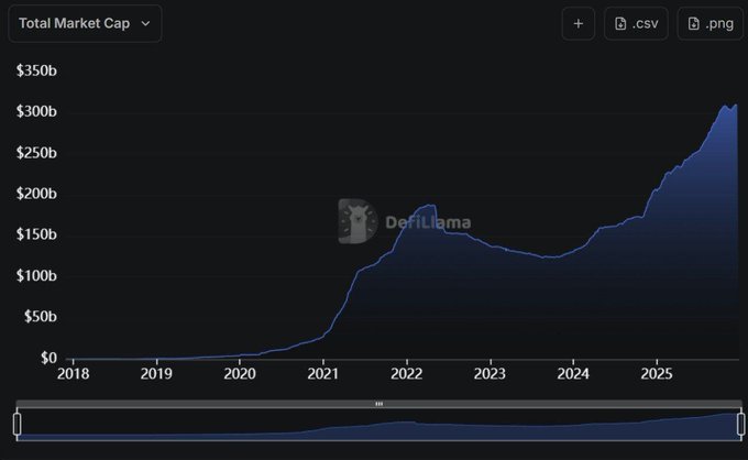 稳定币市值刚刚创下历史新高,达到 3100 亿美元!
