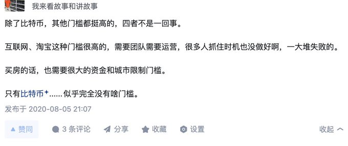 关于这个帖子还有另外一个回复. 这些资产当中,只有比特币毫无门槛. 普通人很难意识到他们手里所谓的法币财富其实是一坨狗屎.想办法自己拿得住的方式永远增持btc twitter.com/xiaomucrypto/statu...