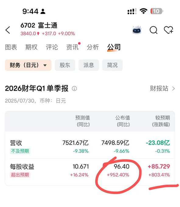这家小日子的富士通公司与英伟达合作搞小日子的ai基建. 单从7.30发的财报来看,他这个每股收益的增长率不输国内的新易盛呐.