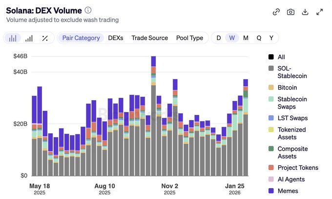 这怎么可能? Solana 的每周 DEX 交易量已连续 6 周上涨,达到 3725 万美元。 即使在这样的市场环境下,交易活动也没有放缓。我们看到更多的交易者和更多的资金流入。