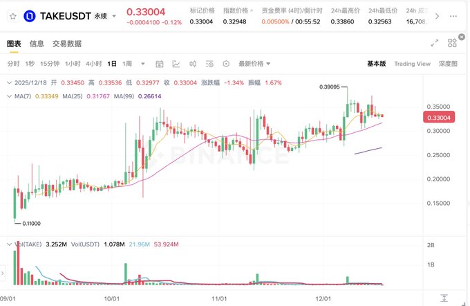 今天看到 $TAKE ,好奇一个币流通接近 18%,资金费率为正,还能让线走这么稳,会是超级马里奥吗? 看了下代币经济,投资者和团队的筹码在 TGE 后都是锁定的,看这 K 线空投的抛压都被项目方消化了。 项目是做游戏资产交易平台, $TAKE 消耗场景有支付、合成卡牌、购买道具、平台收入回购并销毁等等,整体是一个通缩的代币经济,而不是通常项目的挖提卖模式。 经济模型的设计和团队本身的格局,可以让项目不通过暴力拉砸也能让 K 线漂亮。 问题来了,这里你开空还是看涨?