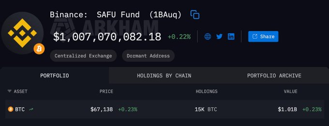 币安 10 个亿的 SAFU 基金已全部买入,共计购买一万五千个 BTC,每个 BTC 的均价为 66,666 USDT。 此次大额买入,算是给熊市承接了 10 个亿的抛压,不过即便如此,大饼走势仍然是萎靡不振。