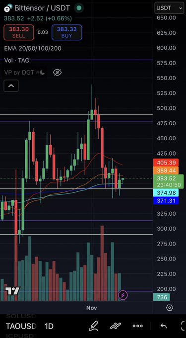 $TAO 目前价格处于区间低位,个人认为是很不错的入场点。 利好包括:Bittensor将在12月迎来减半、OpenAI可能会IPO带动AI板块、还有潜在的ETF。 而且$TAO也是加密圈里少有的真正靠谱项目之一。
