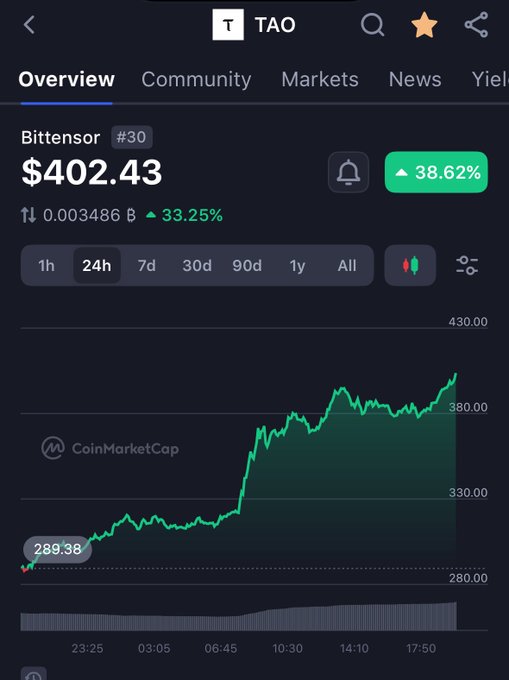 “聪明的投资者知道会发生什么” $TAO 现在是市场上最热门的代币🔥 twitter.com/jollygreenmoney/st...