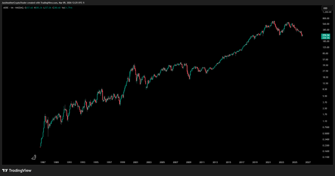 Adobe 的 AI 问题 🙄 $ADBE 三天后将发布财报,压力与日俱增。 自 AI 热潮以来,Adobe 的股价一直受到冲击,因为生成式工具现在可以创建图像,直接挑战了 Adobe 核心设计业务的部分领域。 但 AI 也是一把双刃剑: 它也可以加速 Adobe 内部的开发和自动化,从而有可能减少对大型工程团队的需求。 如果增长放缓,削减成本和裁员也不足为奇。 twitter.com/JA_Maartun/status/...