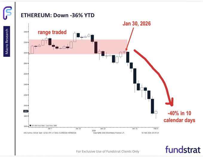 🧵🪡 以太坊、比特币和其他加密货币价格在过去10天内大幅下跌 - $ETH 下跌 -40%,比特币下跌 -30% - 加密货币市场情绪具有反射性 - 因此出现了大量“愤怒抛售” - 许多专家指出,此次下跌是由结构性问题和无法解决的原因造成的 在我看来,这种波动和回撤在2026年很可能就会在加密货币领域发生 继续阅读 👀👀📚