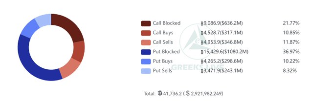 看跌期权仍在主导市场,今天BTC大宗看跌期权成交超10亿美元,占到了37%,其中60K到65K的虚值为主。 期限方面,主是次月和三月的中等期限期权,这意味着机构对中长期的行情持负面态度,在一到两个月内,熊市的预期较强。