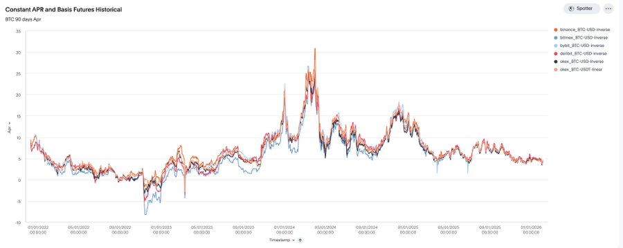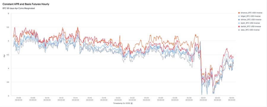 这些图表让我很意外。 90天期4月期货价格仍然在4%左右。 从历史数据来看,在投降区,基差应该为零或负值。 我不想显得过于悲观,但这并非一个健康的信号……