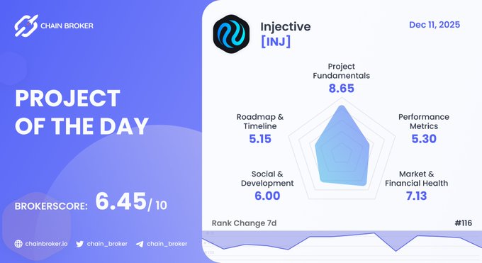 💥今日项目 - 2025年12月11日 @ Injective $INJ 是一个开放的、可互操作的智能合约平台,专为去中心化金融应用而优化。 经纪商评分:6.45/10 排名:#116 您可以在这里了解更多信息: 👉 chainbroker.io/projects/inject...…