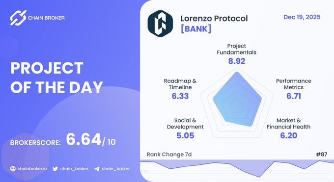 💥 今日推荐项目 - 2025年12月19日 @LorenzoProtocol $BANK 是一个专注于通过代币化金融产品实现机构级收益的 #DeFi 平台。 BrokerScore:6.64 / 10 排名:#87 了解更多信息,请点击此处: 👉 chainbroker.io/projects/lorenz...…