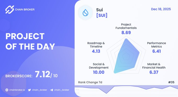 💥 今日项目推荐 - 2025年12月18日 @SuiNetwork $SUI 是一个 #L1 区块链,旨在让数字资产所有权快速、私密、安全且人人可及。 BrokerScore:7.12 / 10 排名:#35 了解更多信息,请点击此处: 👉 chainbroker.io/projects/sui