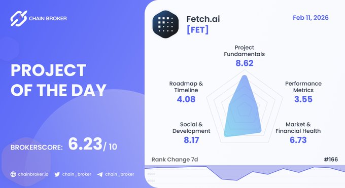 💥 今日项目推荐 - 2026年2月11日 @Fetch_ai $FET 是一个去中心化的机器学习 (ML) 平台,适用于资产交易、零工经济和电网优化等应用。 BrokerScore:6.23 / 10 排名:#166 了解更多信息,请点击此处: 👉 chainbroker.io/projects/fetcha...…