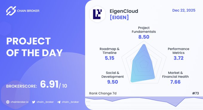 💥 今日项目推荐 - 2025年12月22日 @eigencloud $EIGEN 是一个基于以太坊构建的可验证云平台,它将区块链级别的安全性与链下计算相结合。 BrokerScore:6.91 / 10 排名:#73 了解更多信息,请访问: 👉 chainbroker.io/projects/eigenl...…