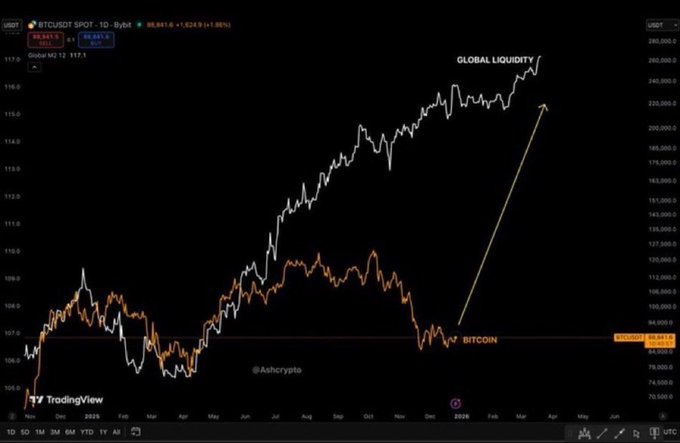 全球M2正在爆发式增长。 #比特币 也将很快跟进🚀 做好准备。