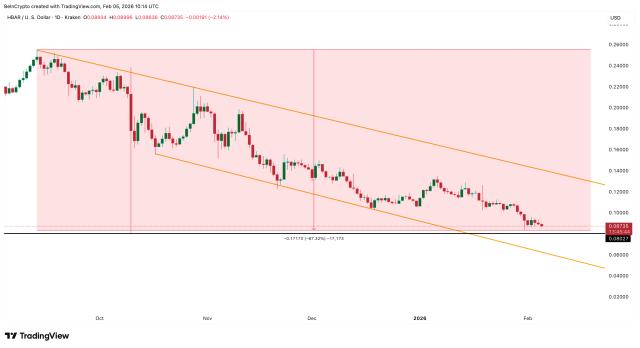 HBAR价格面临30%的风险,TVL主导的下跌加剧,且缺乏ETF支撑。
