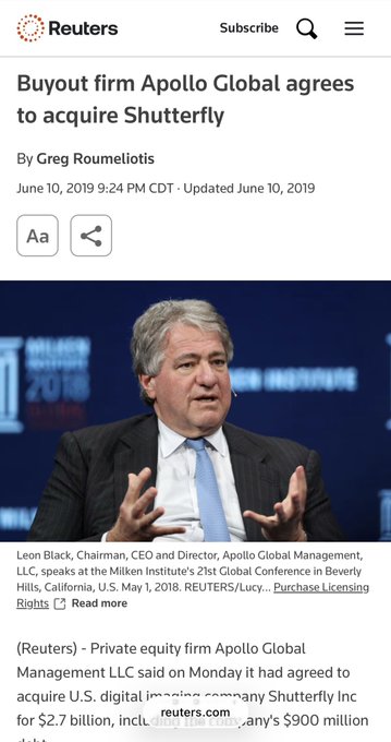 据称,莱昂·布莱克(Leon Black)通过其公司阿波罗环球(Apollo Global)残忍地咬伤年轻女孩的生殖器直至出血,并强奸她们。而他竟然还拥有Shutterfly!Shutterfly还收购了Lifetouch,这家公司很可能就是在学校里偷拍你孩子照片的那家!