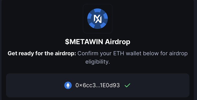 Metawin 的 TGE 看起来非常接近了 所有在 http:/metawin.com 储值的人都会获得空投 考虑到他们之前已经向 NFT 社区发放了近八位数的奖金——我认为这次的活动会很意思 twitter.com/Overdose_AI/status...