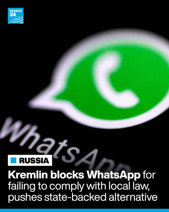 🇷🇺📱 克里姆林宫表示,俄罗斯已封禁 WhatsApp,理由是其未能遵守当地法律,并敦促用户转而使用官方支持的即时通讯软件 MAX。 批评人士称 MAX 是一款监控工具,但当局否认了这一说法。 阅读更多 ➡️ go.france24.com/mst