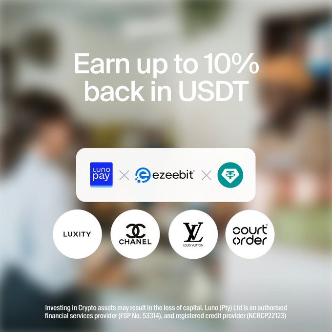 无论你在哪里购物,都可以使用 Luno Pay 在线上或店内消费你的加密货币,并在任何 @ezeebit 商家处赚取高达 10% 的USDT返利。