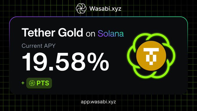 Wasabi Earn 让您在黄金交易中赚取 19% 的收益。 Tether Gold是由Tether发行的完全支持的代币化黄金。 提高硬资产的利用率: