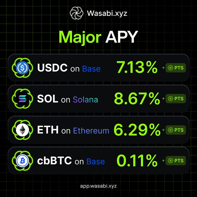 主要股票收益率在业内领先。 Wasabi 为主要资产提供最高的平均利率。 通过担任杠杆交易者的经纪商,在 $ETH 上赚取 6.3% 的收益,在 $SOL 上赚取 8.7% 的收益。 获得你真正想长期持有的资产的真实收益。🟢