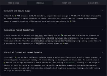 ARKHAM监测分析报告指出, $PEPE 在X上的乐观情绪在显著增加,包括相关推文数量从平均的524突增到888,看涨情绪比例从47%上涨到80%。是有什么大事要发生吗? twitter.com/neso/status/202207...