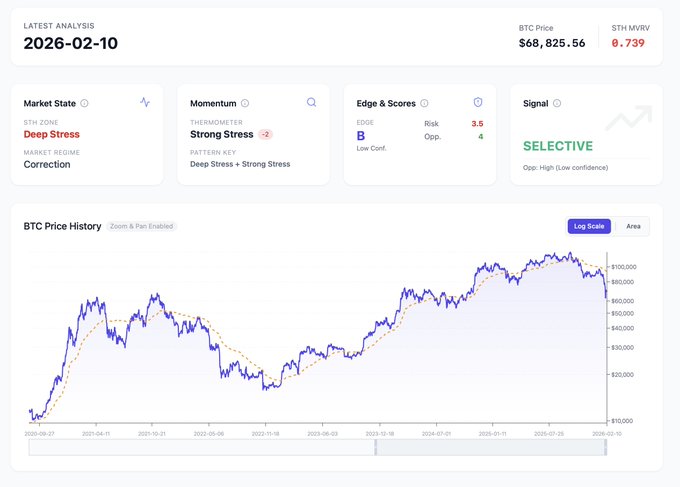 你可以说BTC没问题,但数据却讲述了一个不同的故事:该模型将当前 STH 的状态归类为深度压力。 框架的详细分解如下:open.substack.com/pub/adlerscr...…