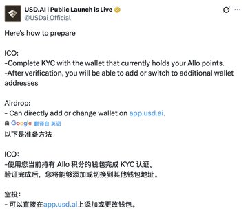 当初抢破头的 @USDai_Official 发了空投标准 代币总量100亿,空投3%,大概在3月份tge 还搞了个ico,在coinlist上,估值3亿美金,卖7%的代币 我不参与了,最近的ico全是破发的,少动就少亏 想变更空投钱包的直接到:app.usd.ai