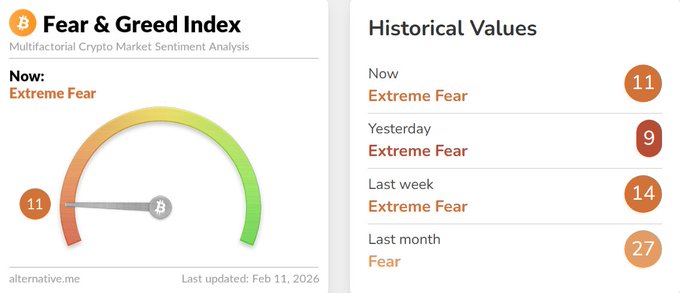 加密货币市场的恐惧与贪婪情绪达到了11级。 市场情绪已经低迷了很长时间…… 我们在这里停留的时间越长,反弹的力度就会越大。