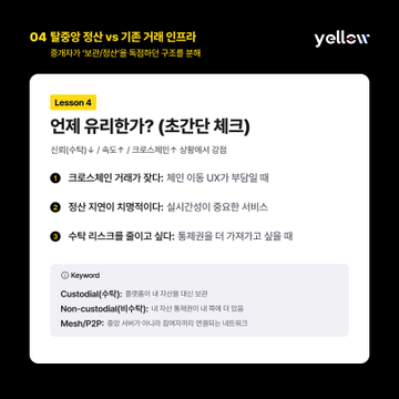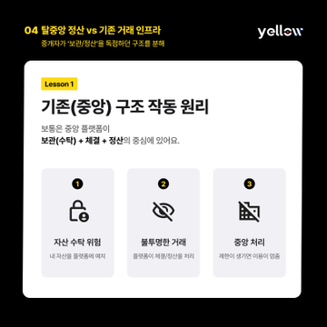 🟡 Yellow | 去中心化结算 vs. 现有交易基础设施 现有交易架构中,平台负责托管、执行和结算,这导致托管风险、信息不透明以及对中心化的依赖。 Yellow 是一个 P2P 结算网络,它优先考虑“参与者/合约规则而非中心化系统”,在通道内快速处理交易,并确保链上最终确认。