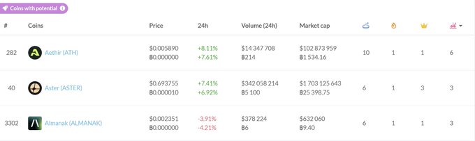潜力股前三名 👀 🥇 $ATH (@aethircloud) 👉 coinmarketcal.com/en/coin/aeth... 10 个即将到来的活动 1 个热门活动 1 个极具影响力的活动 6 个潜在催化剂 🥈 $ASTER (@aster_dex) 👉 coinmarketcal.com/en/coin/aste... 6 个即将到来的活动 1 个热门活动 3 个极具影响力的活动 3 个潜在催化剂 🥉 $ALMANAK (@almanak) 👉 coinmarketcal.com/en/coin/alma... 6 个即将到来的活动 1 个热门活动 1 个极具影响力的活动 3 个潜在催化剂 更多亮点 👉 coinmarketcal.com/en/highlight...