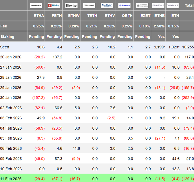 $ETH 昨日ETF资金流出1.291亿美元🔴。 贝莱德抛售了价值2940万美元的以太坊。