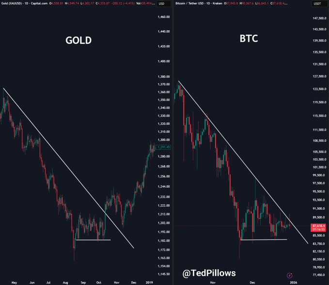 数位黄金似乎正在跟随实体黄金的分形走势。 如果突破并收在 9 万美元上方,数位黄金价格将突破 10 万美元。