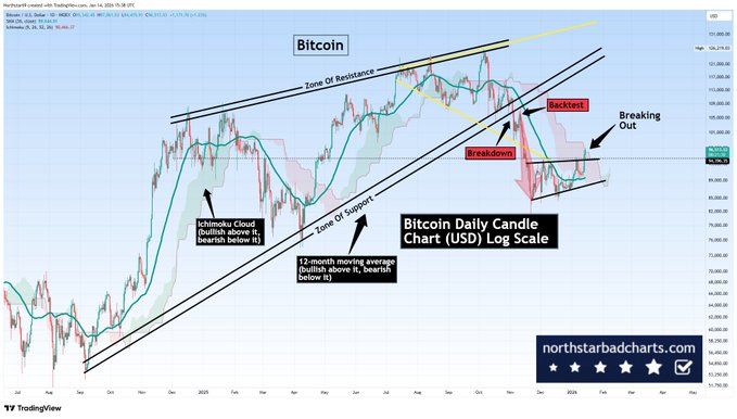 比特币突破。有机会再次上涨至 102,000 美元至 106,000 美元区域。该区域的反应至关重要……