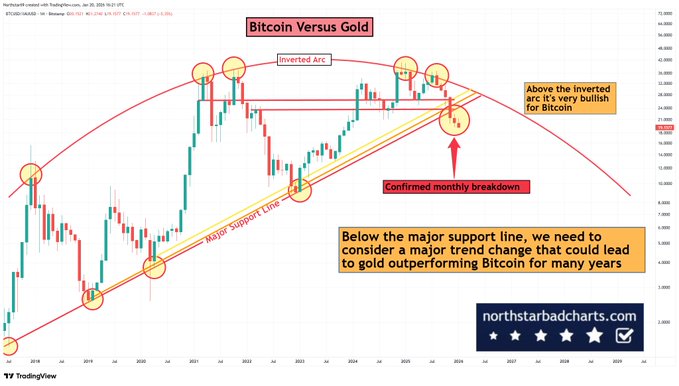 突发:比特币或将进入多年熊市,而黄金价格则可能下跌👇 twitter.com/NorthstarCharts/st...