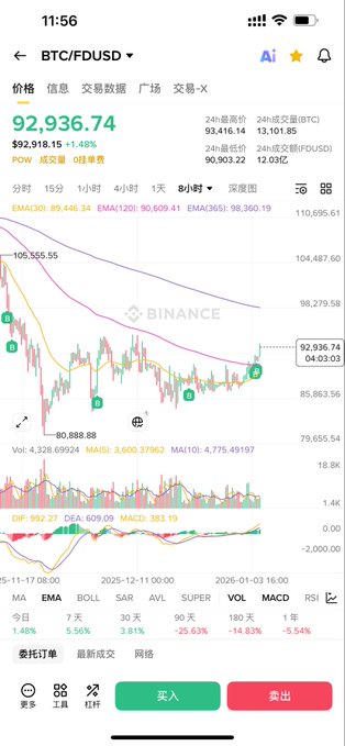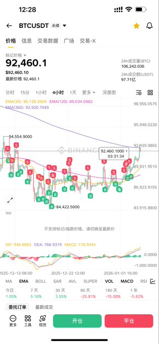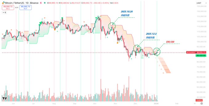 再结合昨天的推文:在技术指标上,当日K收盘站上下降趋势线($90,588)的时候,便是预期反弹开始的信号 —— 这一条也已满足。