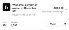 gg,恭喜跟我一起押注 Lighter 的各位! 不到 24 小时涨了 50%,干得漂亮! 正在寻找下一个机会,已卖出全部仓位。 twitter.com/DeRonin_/status/20...