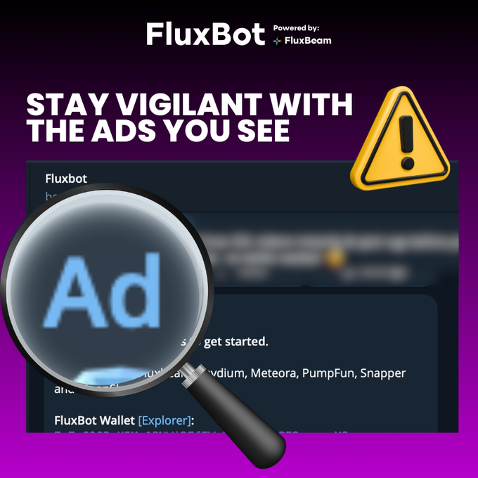 ⚠️提醒⚠️ 您可能会偶尔在 FluxBot 中看到广告。 这些广告并非由我们控制或认可。 切勿泄露您的私钥。注意安全。