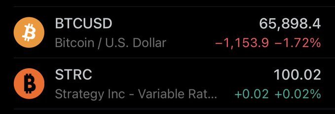 市场尚未理解这背后的深远影响。 (仍然) STRC 价格持平,而比特币价格达到 6.5 万美元,这就像矩阵中的一个故障。