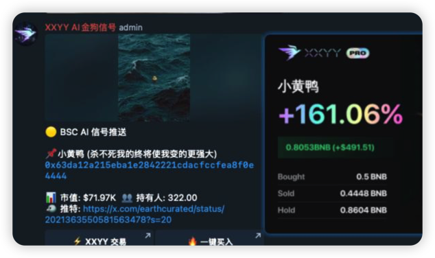 刚刚看到小群里的AI信号,随手打了一枪 $小黄鸭 ,有点舒服。