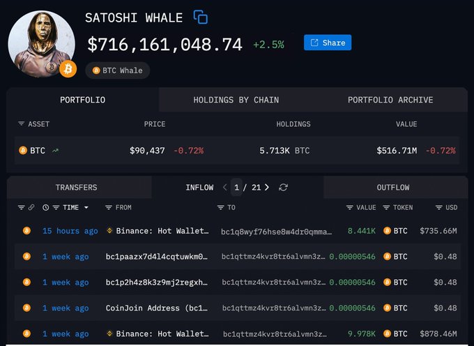 🚨突发新闻: 中本聪时代的巨鲸刚刚在币安买入了价值 7.35 亿美元的 8,441 枚代币 $BTC 这个钱包预测了自2015年以来的每一次重大下跌 他绝对知道些什么!!