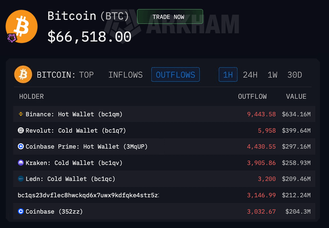 🚨突发新闻: 这就是加密货币市场目前暴跌的确切原因: 币安售出 9,443 个BTC Revolut售出5,958个BTC Coinbase售出7,462个BTC Kraken售出 3,905 个BTC LEDN 售出 3,200 个BTC 他们在短短30分钟内抛售了超过50亿美元的股票。 这是有组织的倾倒垃圾!