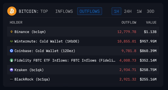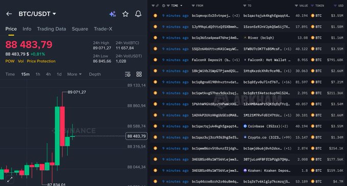 🚨突发新闻: 以下是比特币今日暴跌的确切原因: 币安售出 12,779 个BTC Wintermute已售出 10,855 个BTC Coinbase售出9,781个BTC 贝莱德售出 2,921 个BTC 随机巨鲸售出 9,711 个BTC 他们今天抛售了超过35亿美元,而且还在继续抛售更多。 这完全是一场有组织的垃圾场活动!!