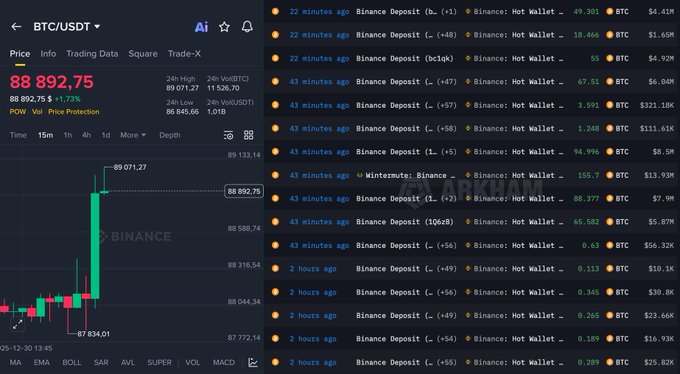 🚨 重磅消息: 币安正在疯狂囤积数百万枚比特币 他们刚刚购入了价值 1.25 亿美元的比特币,并且每分钟都在持续增持 他们绝对掌握了内幕消息!!👀 twitter.com/DeFiTracer/status/...