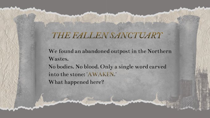 ⚔️ 第一周主题:陷落的圣殿 ⚔️ “我们在北方荒原发现了一个废弃的前哨站。没有尸体,没有血迹,只有一块石头上刻著一个词:‘觉醒’。” 这里发生了什么事? 💰最佳续牌奖励 50 USDT 立即在我们的 Discord 频道 #Share-content 提交你的故事(50 字以上)! 👉 [discord.gg/lastodysseyhq]