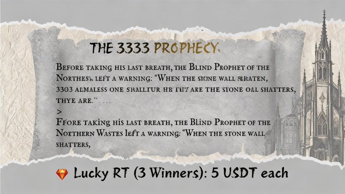 ⚔️档案管理员日志:第三周正文⚔️ 预言应验了。 3333的真正本质已经揭示。 👁️ 恭喜指挥官@zhuren1992 的作品获奖!您对3333的精彩诠释现已正式成为米丹加德的背景故事! 🏆 您赢得 50 USDT 💰 幸运转发得奖者(每人 5 USDT ): @sblack2014 @vpnguj @earning_turbo 领取奖励:所有得奖者请在 48 小时内透过 Discord 提交工单领取您的奖励。 twitter.com/LastOdyssey_io/sta...