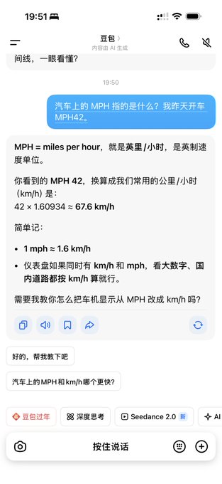 新手女司机副驾驶上,只要做的是别人的老公,才能温柔的开全程。 昨天下午开车回老家,送年礼还有包子。 因为我是新手,我先生做我车嘴巴特别碎,我心里压力更大了。 昨天开车就感觉这个车怎么回事,特别快,我都感觉快飞起来了,看了仪表盘才 42 到 60 码,结果回来的时候,我看我先生开车仪表盘,才知道我看的是 MPH ,而不是 KM/H。 英里每小时和公里每小时差了 1.6 倍,难怪我昨天开在县道上,感觉自己车不稳,开的太快了。 最高我看到 57 英里每小时😂 前几天他弟弟来我们家,因为喝酒,就让我开车,一直鼓励我,总是告诉我,米可以的,你开的不错,还行,没事的,可以过去。 我犯错误,也是幽默的提醒我。 但是我弟媳妇对弟弟就是另外的感受,弟媳妇也才拿驾照,我弟媳妇开一路,我弟弟一路上碎嘴一路。 看来大部分老公都一样。 这样的老公没有智慧,我们女人需要的是稳定情绪的男人,遇到时候可以冷静,不指责,给出方案,而不是痛骂一顿我们。 昨天回家转弯路上,我提前打了转向灯,等后面的人超越我再拐弯,这是错误的,我应该直接转弯,又是被我爱人痛批一顿,一点魅力都没有了🙃 昨天路上,我都恨不得让他下车走回去。 这样只会让自己的媳妇成为泼妇,生活中媳妇能不找事吗? 不知道大家才开车,另一半反应怎样的?