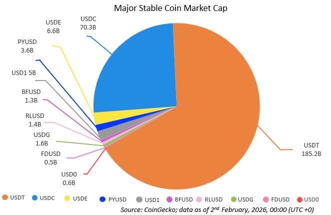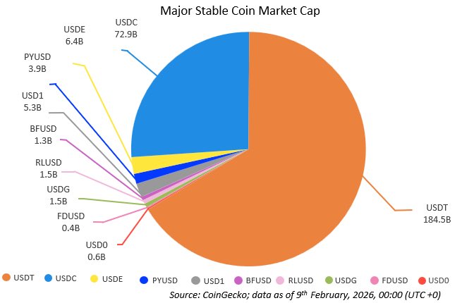 2025年2月10日 稳定币周报 $USDT $USDC $USDE $PYUSD #USD1 $BFUSD $RLUSD $USDG $FDUSD #USD0 来源:@BastionTrading 量化分析