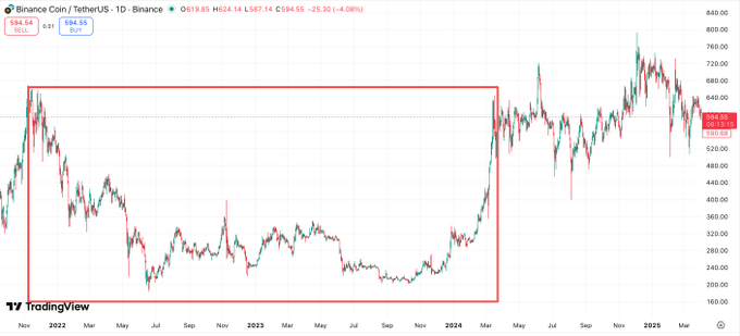 有一个群友1200买的BNB 最近这几天老找我 他感觉自己扛不住 我给他看了我上一轮站岗的K线 我2021年成本600的BNB 经历了Luna崩盘、3AC破产、ETH连环清算、FTX暴雷 SEC起诉币安、CZ辞职入狱 等等一系列事件 只要你走的路是正确的 那就别怕路上的坎坷 @cz_binance @heyibinance @binancezh