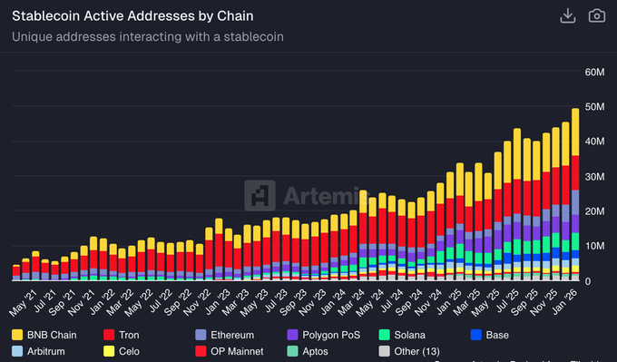 大多数人提到加密货币支付 想到的当然是稳定币 因为价值固定 BNB Chain已经是稳定币活跃地址第一 并且连续八个月第一,或许和Gas有关系? 如果现在让你使用加密支付 你会选什么生态 我想大部分人的答案是BNB Chain BNB Chain的稳定币生态已经从幼雏成长为老鹰 @cz_binance @egll_american #EGL1 twitter.com/0xMoon6626/status/...